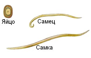 Паразиты имеют внешнее сходство с дождевым червем и желто-белый окрас (иногда красноватый с желтизной). При проникновении яиц аскарид через рот, развитие личинок начинается уже 2-3 часа при достижении ими тонкого кишечника. Как только из яиц получились личинки, через стенки кишки происходит их быстрое всасывание в кровеносное русло.